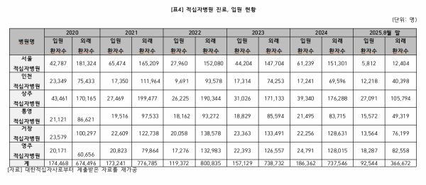 의료 공백의 피해는 고스란히 지역 주민들에게 돌아가고 있습니다. 2020년부터 지난해까지 상주적십자병원의 연평균 입원 환자 수는 3만3천여 명, 외래 환자는 18만 명을 넘었고, 영주적십자병원 역시 연평균 입원 환자 2만1천여 명, 외래 환자 10만 명 이상이 진료를 받았습니다. 특히 영주적십자병원의 외래 환자는 2022년 13만 명을 넘어선 이후 매년 10만 명대를 유지하고 있습니다.