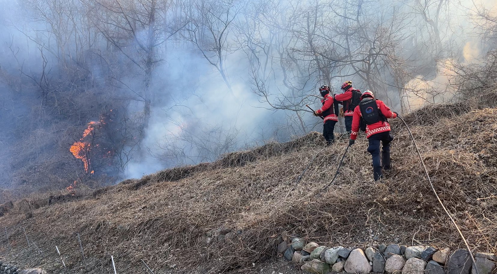 현장에는 평균 풍속 초속 7.6m 안팎의 북서풍이 불어, 불길이 능선과 계곡을 따라 빠르게 이동하고 불씨를 날려 새로운 화선을 만들고, 이미 진화가 이뤄진 구간에서도 재발화를 유발하고 있는 것으로 알려졌습니다.