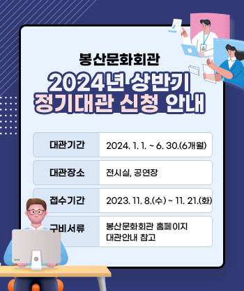 [봉산문화회관] 2024 상반기 정기대관 신청 안내